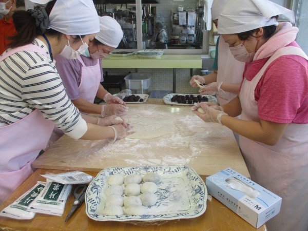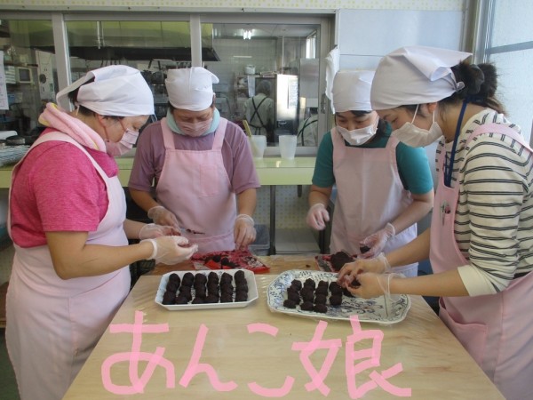 今年は4名のあんこ娘たちができたての餅に愛と・希望と・あんこを詰め